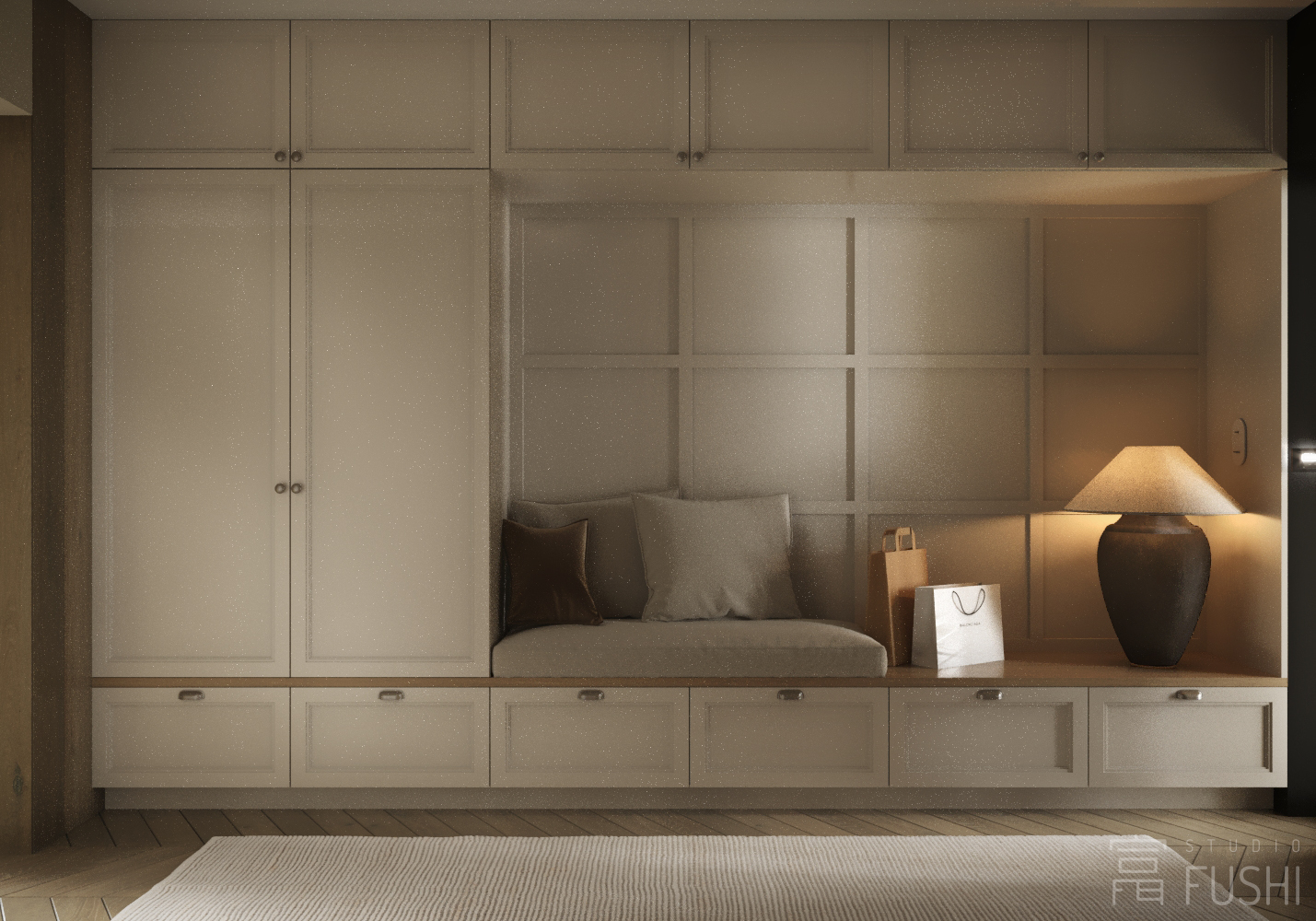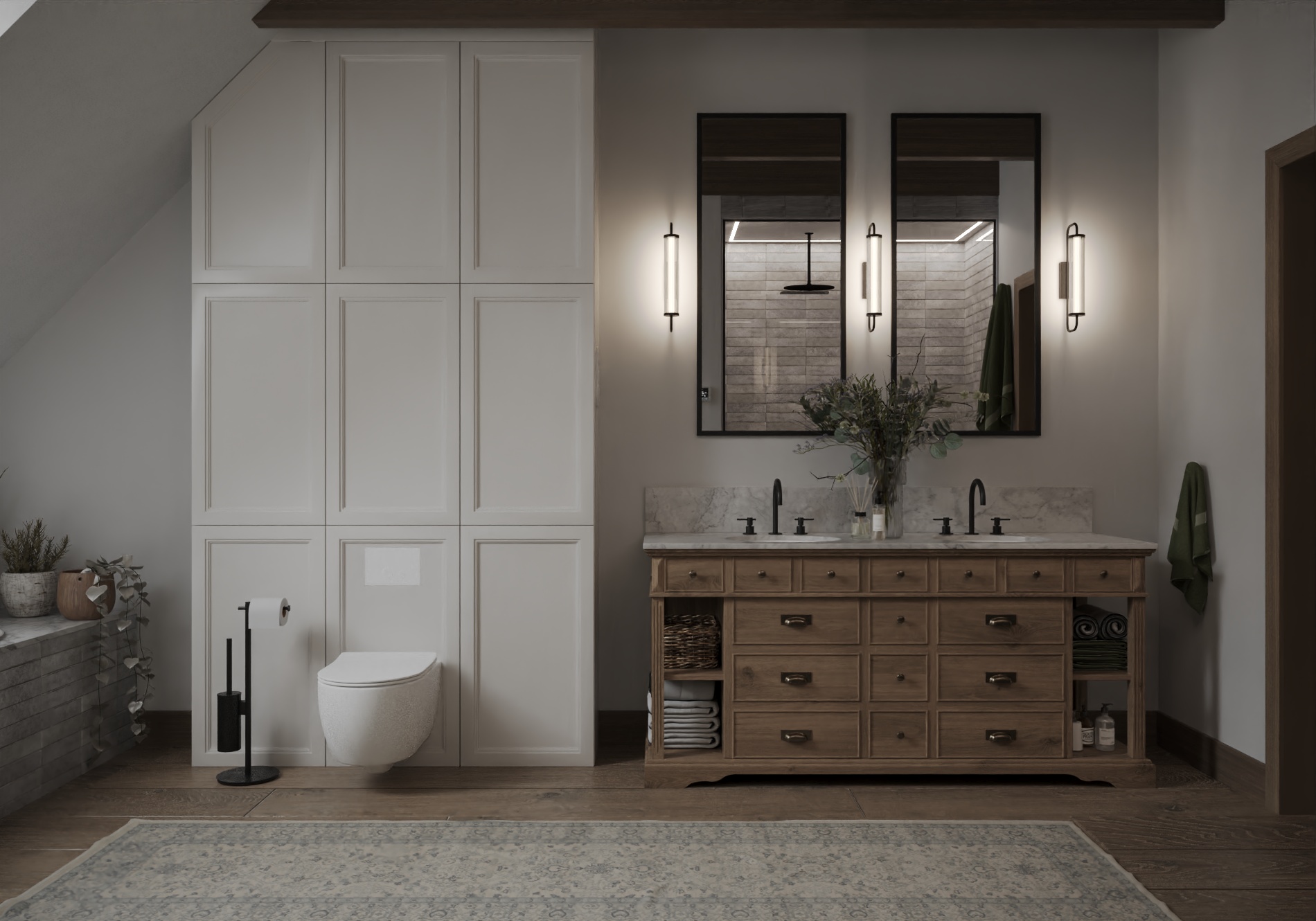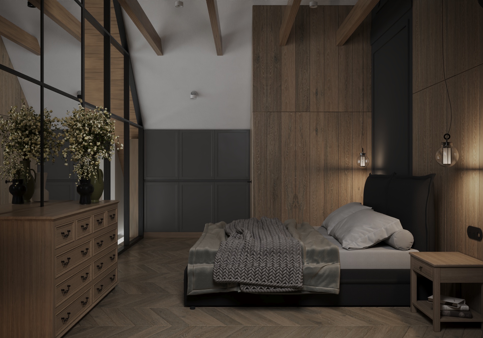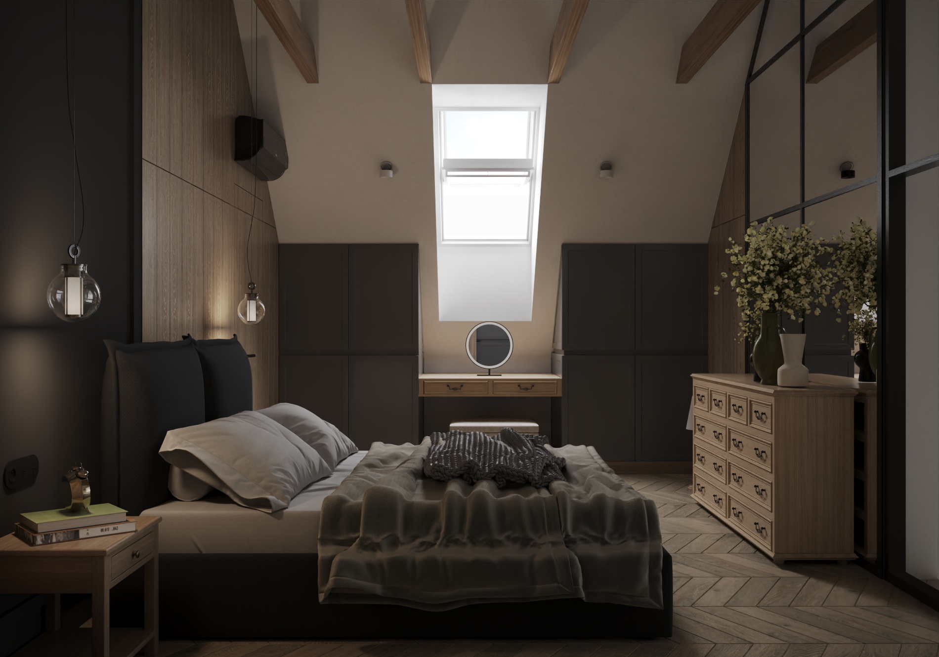 Wnętrze łączy nowoczesne rozwiązania projektowe z ciepłą, wyważoną paletą materiałów. Naturalne światło, spokojne proporcje oraz konsekwentnie prowadzone detale budują atmosferę harmonii i ponadczasowej elegancji. Projekt został zaplanowany tak, aby mógł elastycznie reagować na zmieniające się potrzeby mieszkańców, zachowując przy tym estetyczną spójność i funkcjonalność na lata.