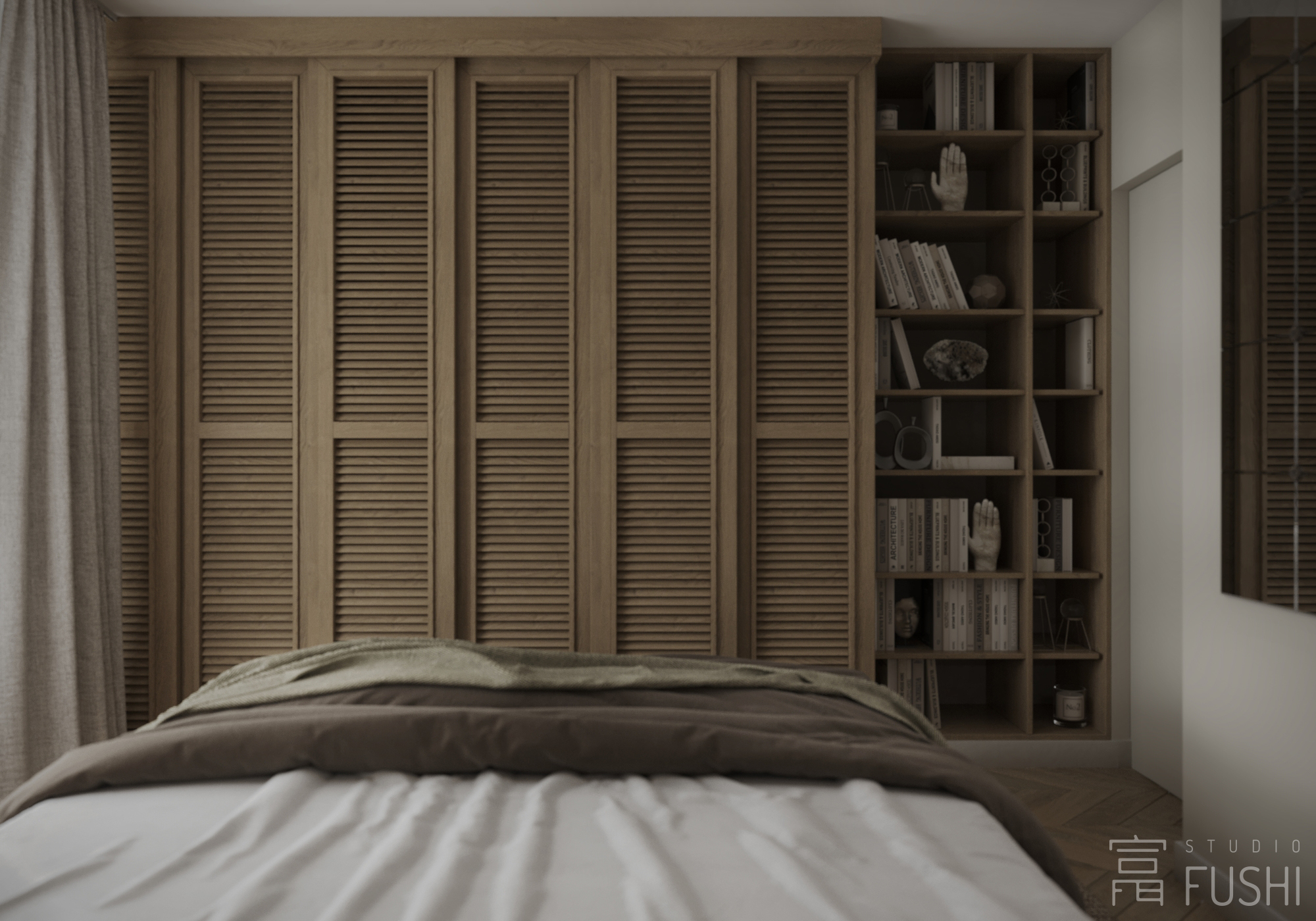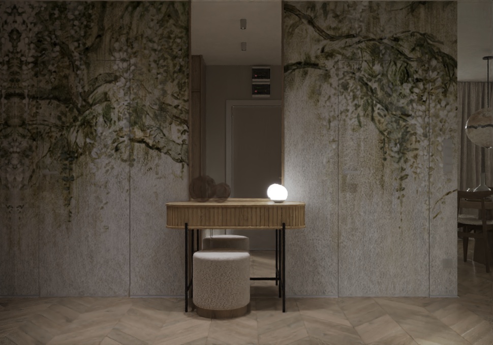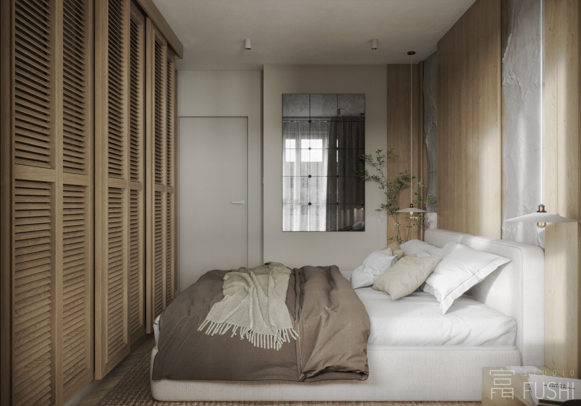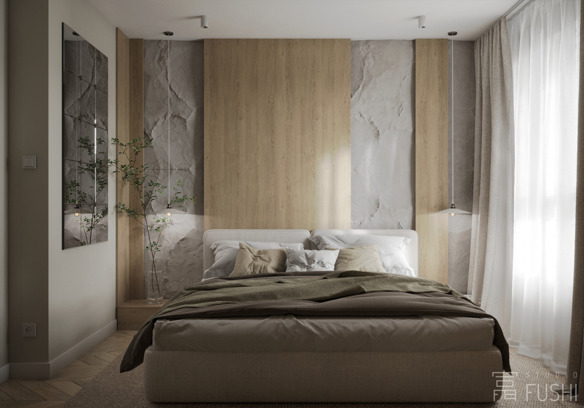 Część prywatna mieszkania utrzymana jest w tej samej, spójnej estetyce. Minimalistyczne formy, ograniczona liczba materiałów oraz precyzyjnie zaplanowane detale pozwalają skupić się na jakości przestrzeni, a nie na dekoracyjności. Całość tworzy wnętrze ponadczasowe — neutralne, ale wyraziste w swojej prostocie.