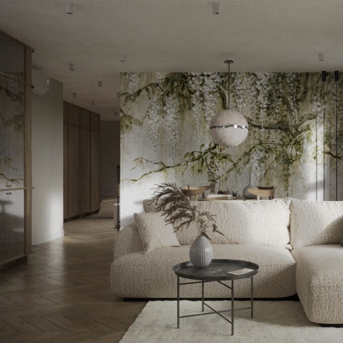 Projekt wnętrz mieszkania w Siedlcach został oparty na prostym, czytelnym układzie przestrzennym oraz konsekwentnej pracy materiałem i światłem. Bazą aranżacji są jasne tony, naturalne drewno oraz stonowana paleta szarości i beżu, które porządkują przestrzeń i budują spokojne tło dla codziennego życia.