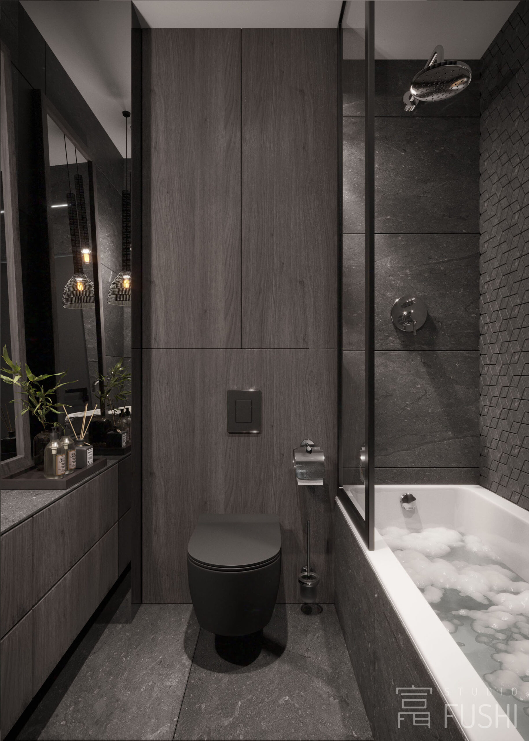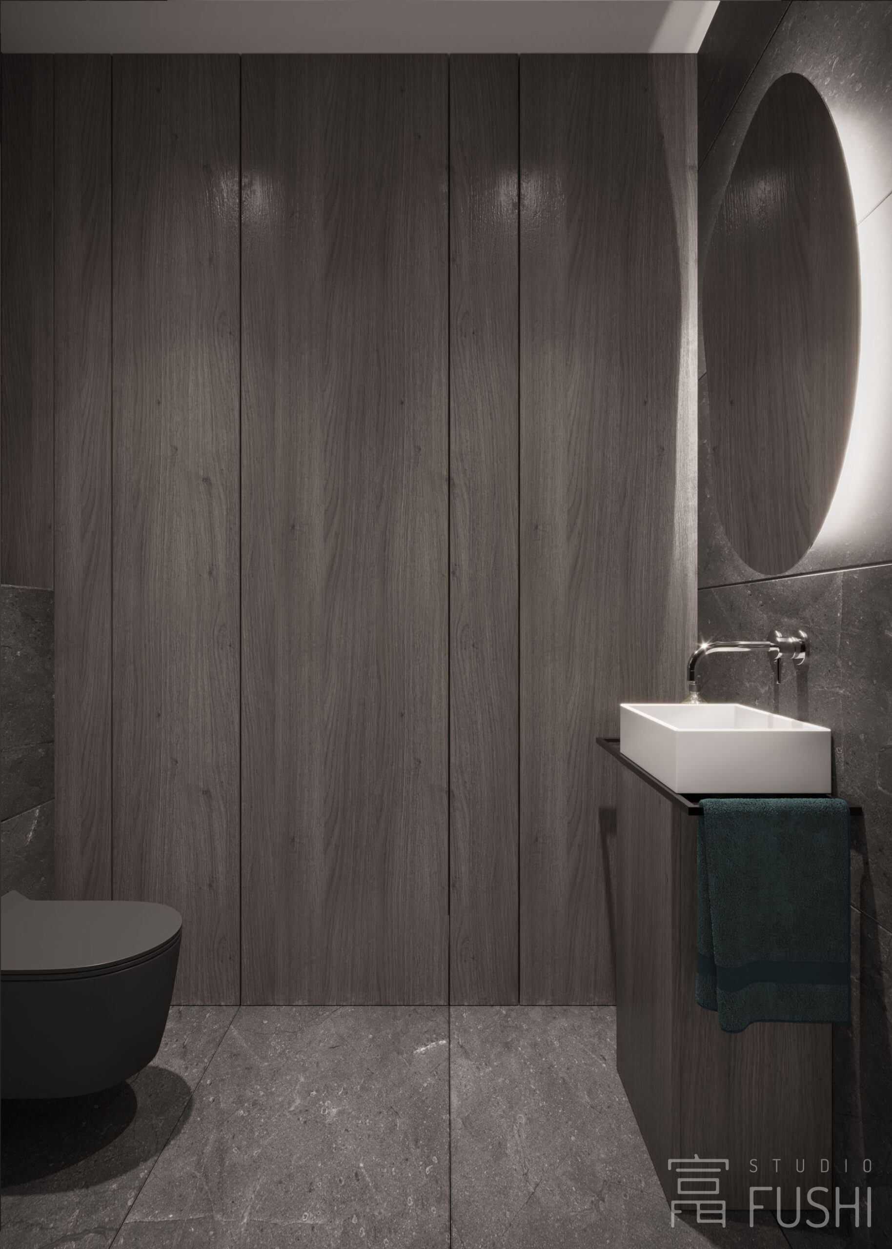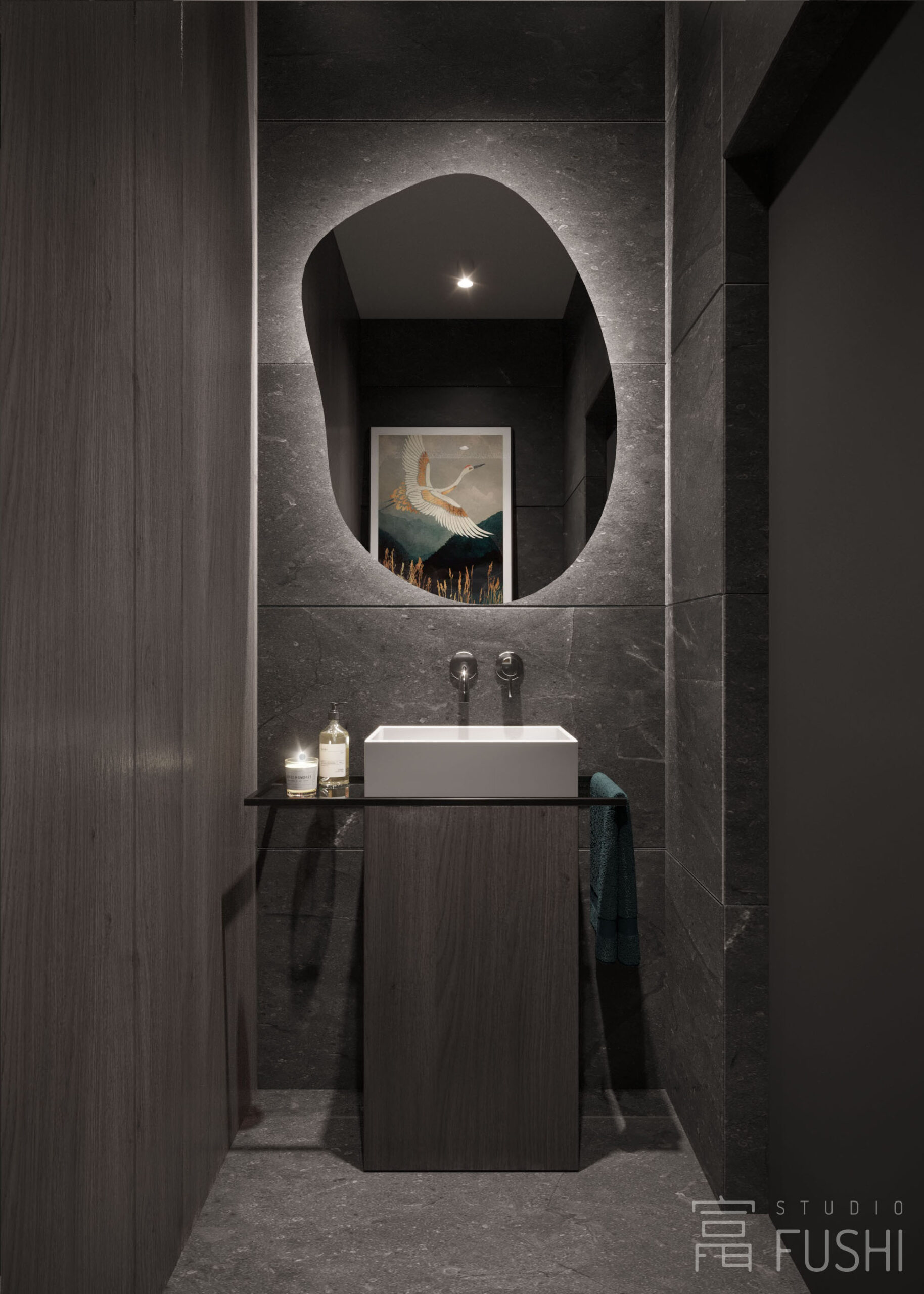Część prywatna utrzymana jest w tej samej, spokojnej stylistyce. Ograniczona liczba materiałów, uważnie zaprojektowane detale oraz świadoma praca światłem budują wnętrze neutralne i ponadczasowe, zaplanowane z myślą o długofalowym użytkowaniu, a nie chwilowych trendach.